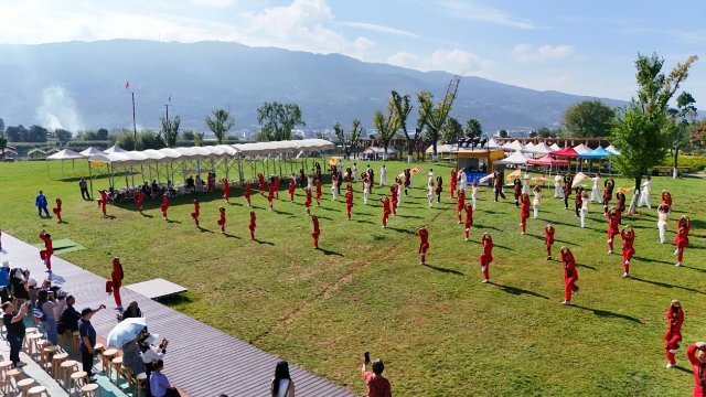 发布会现场,与会领导为“五和麒麟拳”创作团队颁发拳法创编证书,拳法创编人、曲靖市武术协会会长王义普进行了个人拳法展演。随后,百名武者集体展示拳法表演,其中还有多名外籍武术爱好者远道而来,大家身着红色服装,只见“麒麟爪”之锋锐、“麒麟掌”之厚重、“麒麟尾”之灵动,一招一式,皆是历史文脉在拳风中的铿锵回响,恢宏气势将现场氛围推向高潮。